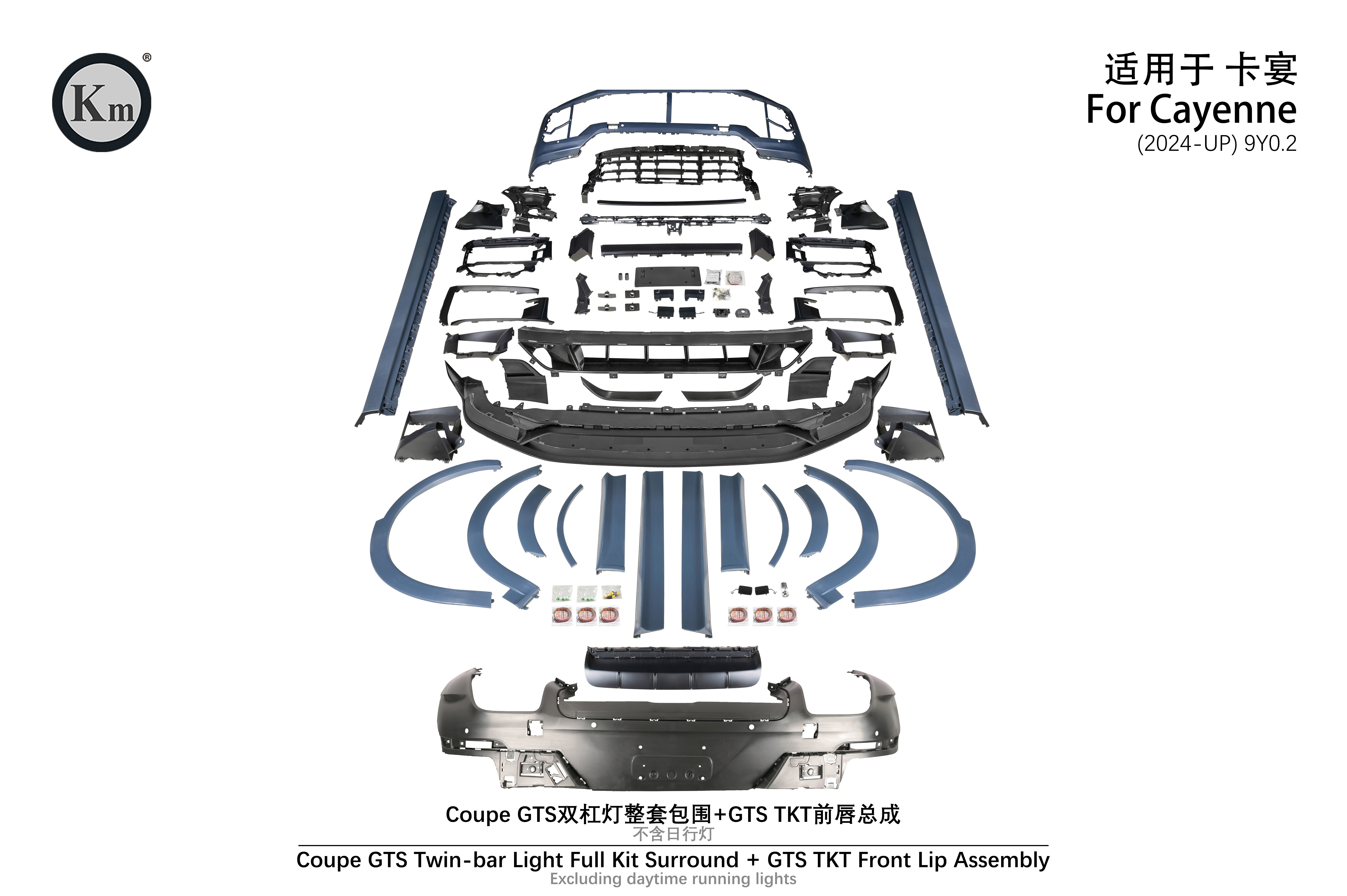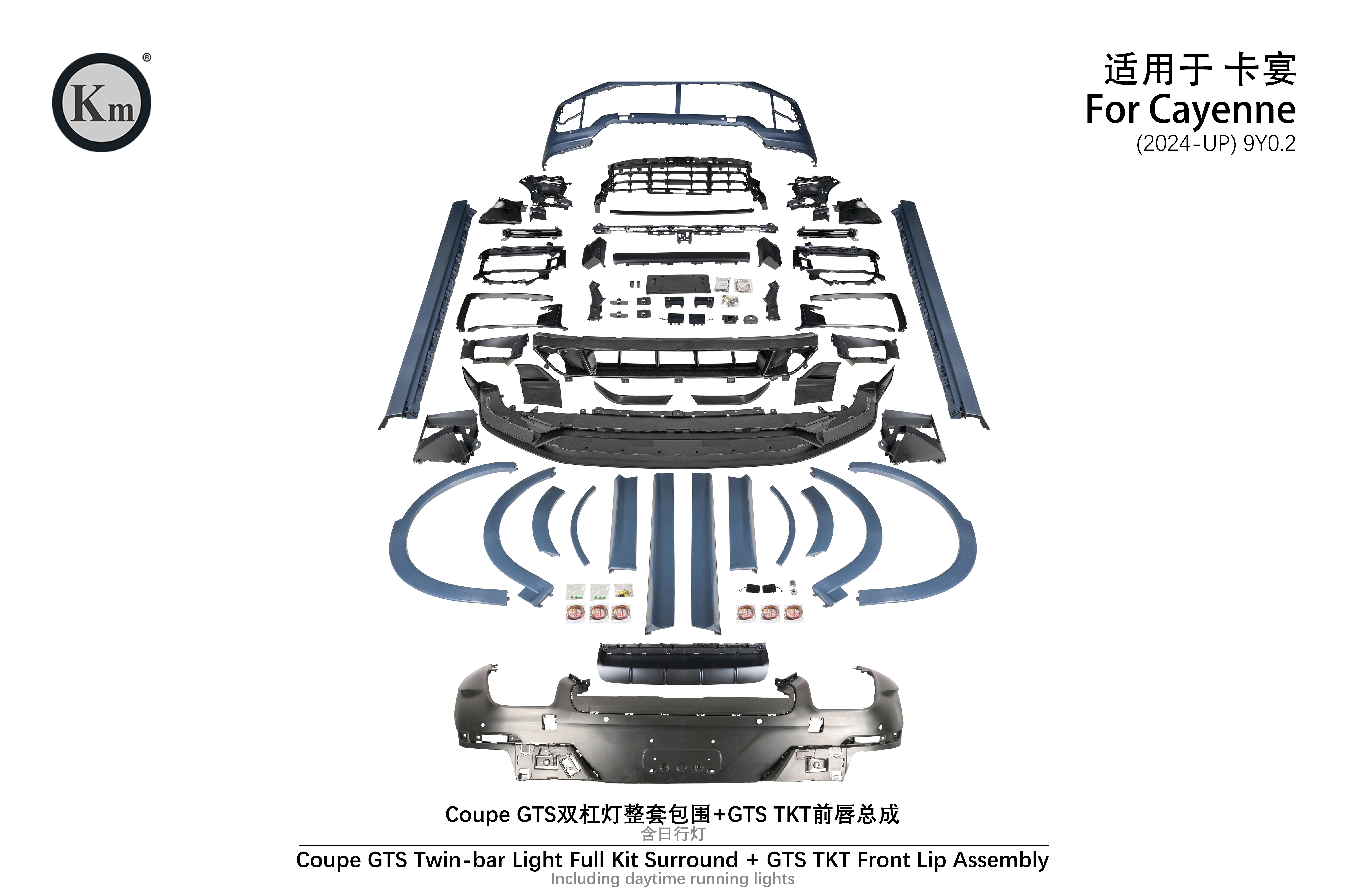 适用于9Y0.2 Coupe GTS 双杠灯整套包围+GTS TKT前唇总成(不含日行灯)