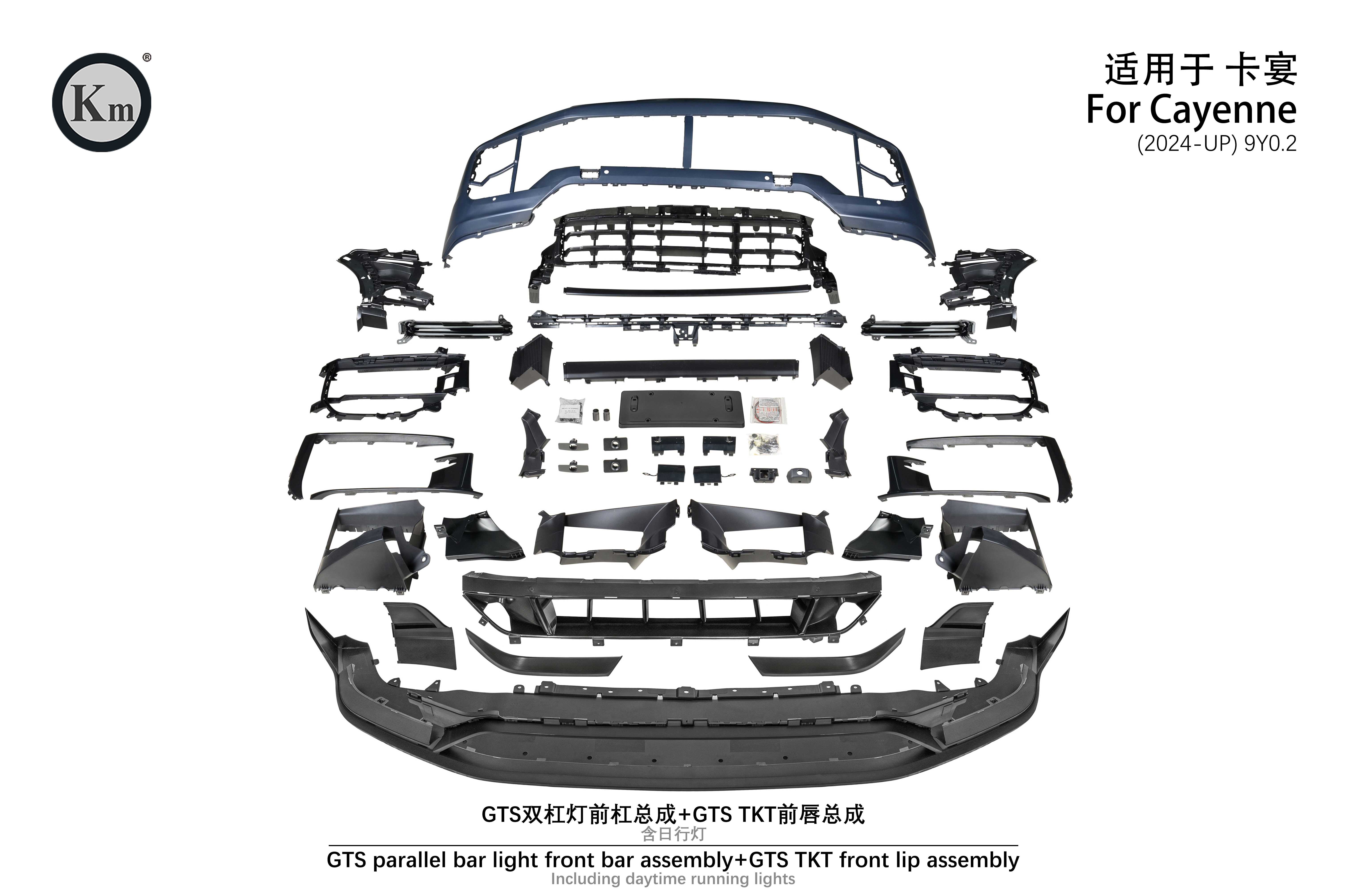 适用于9Y0.2 GTS双杠灯前杠总成+GTS TKT前唇总成(含日行灯)