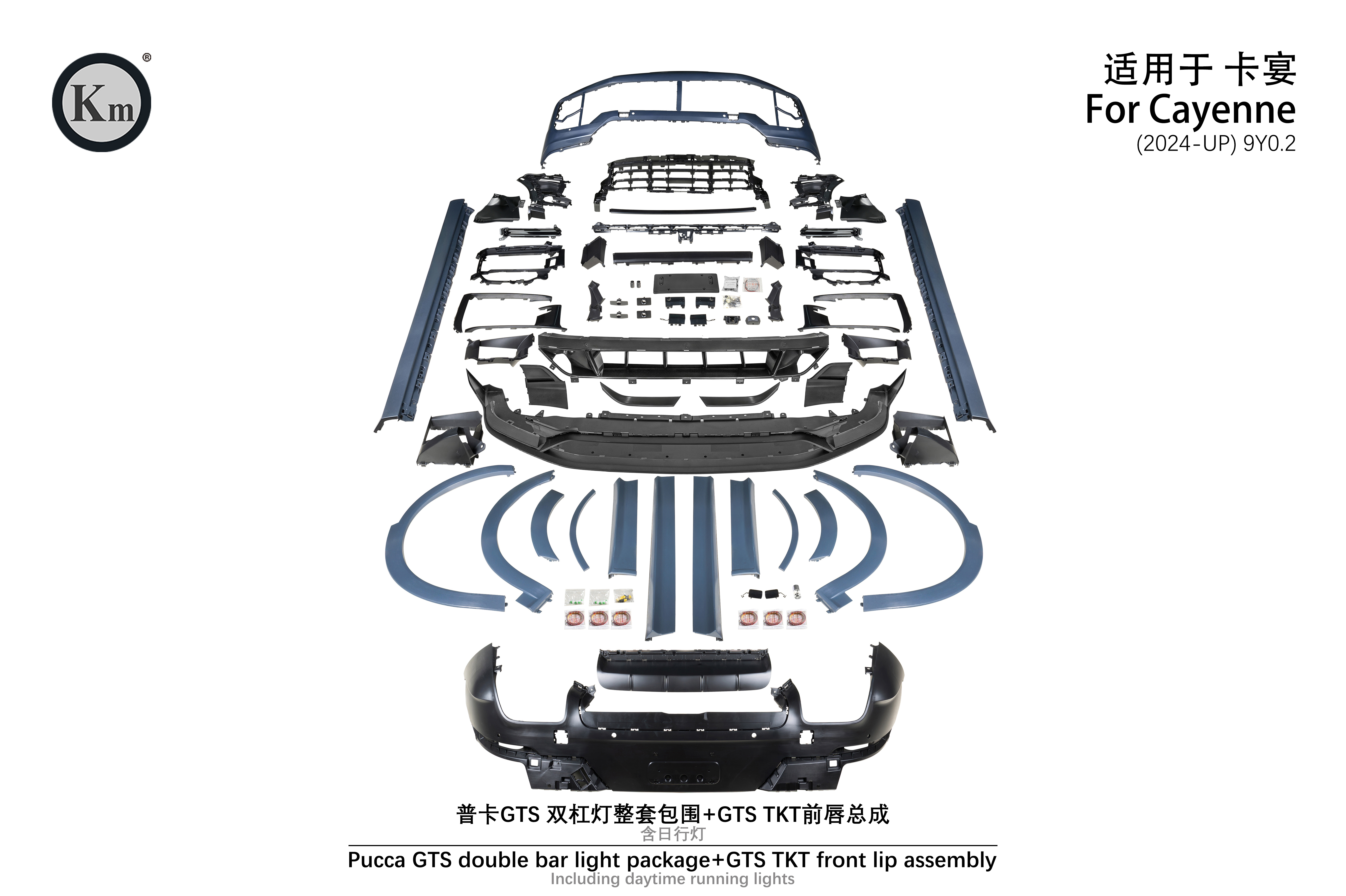 适用于9Y0.2 普卡GTS双杠灯整套包围+GTS TKT前唇总成(含日行灯)