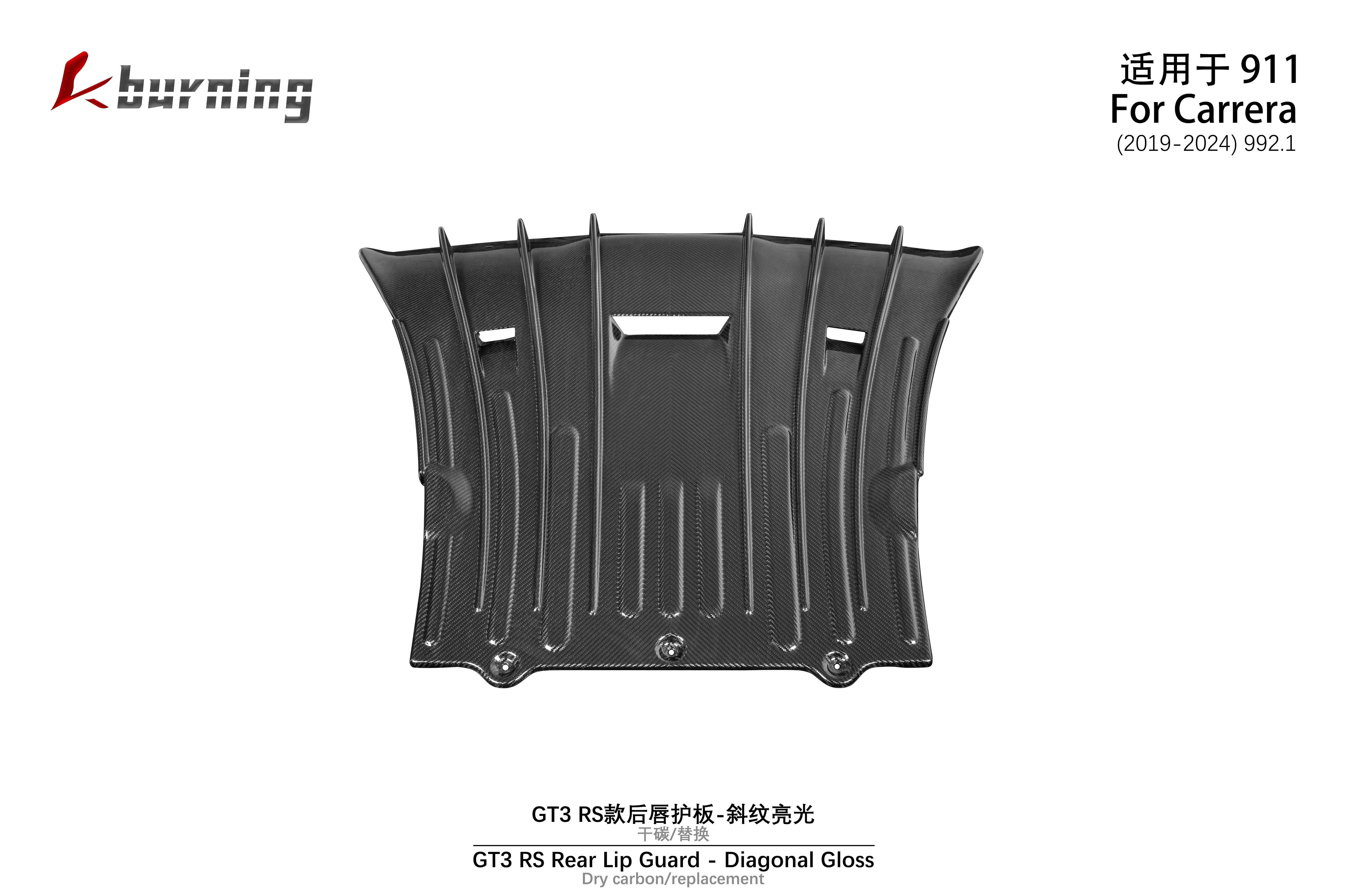适用于992 GT3RS款后唇护板-斜纹亮光 干碳替换