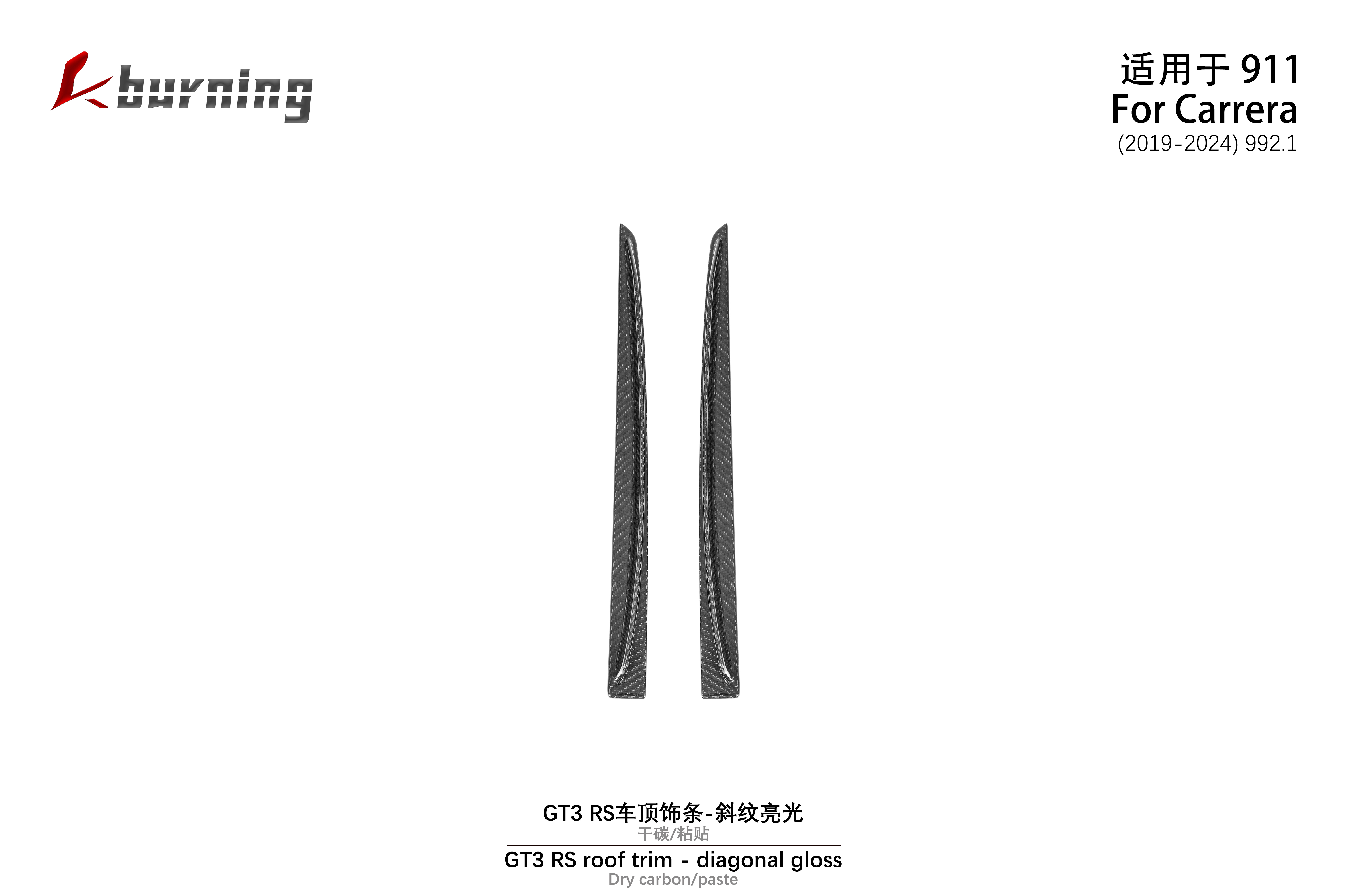 适用于992 GT3RS车顶饰条-斜纹亮光 干碳粘贴