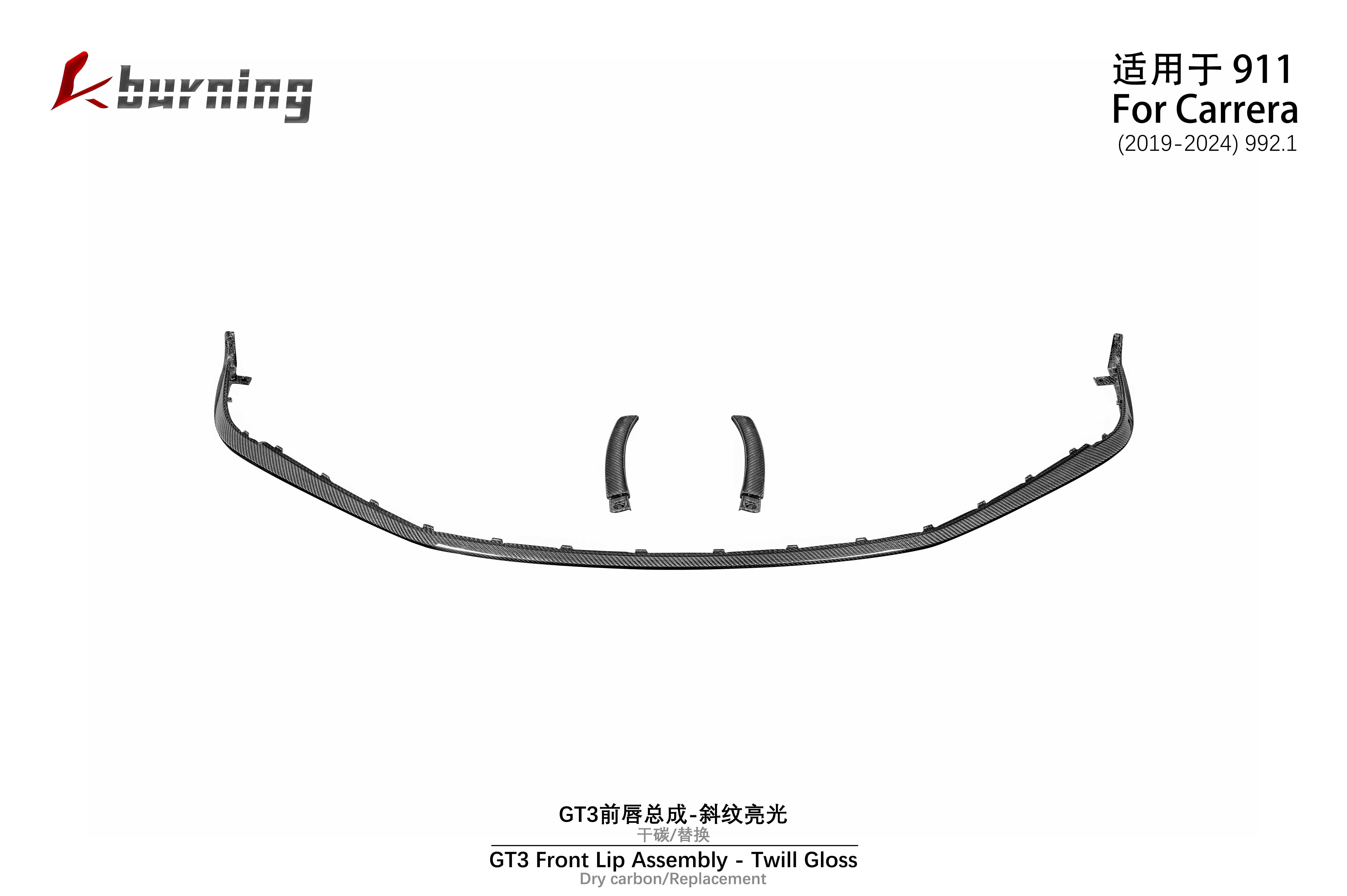 适用于992 GT3前唇总成-斜纹亮光 干碳替换
