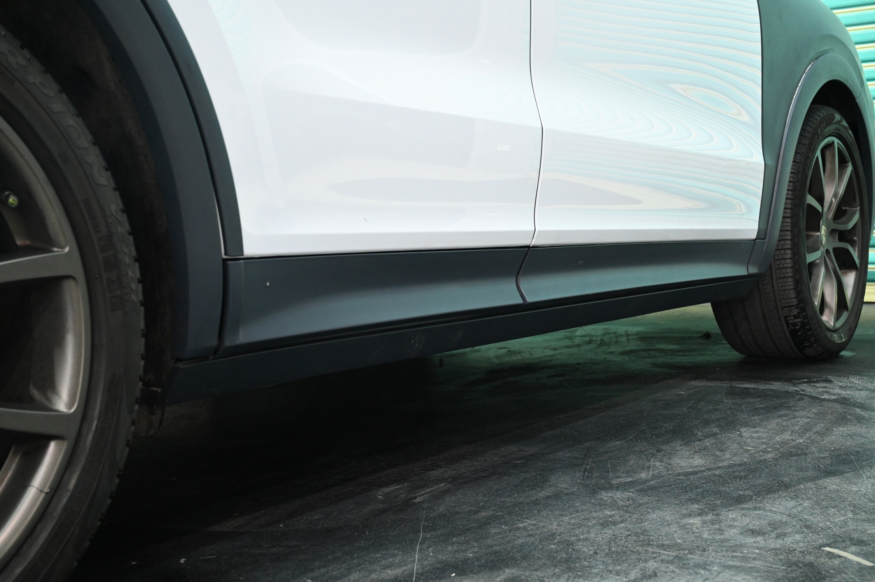 原车采用的是窄体轮眉及侧裙,升级后的Turbo GT款式则为宽体肌肉感更强,喷漆后与车身同色相比原黑色塑料轮眉更有质感。